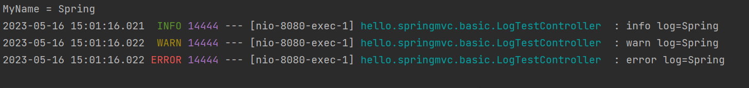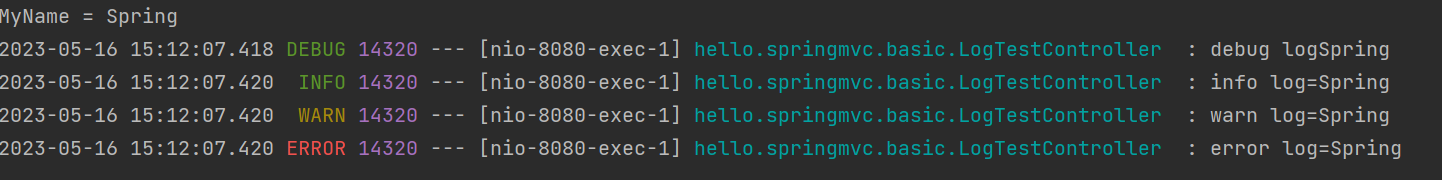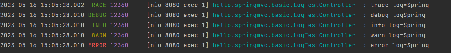 출력 레벨을 debug로 하면 TRACE는 찍히지 않는다.